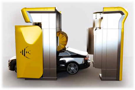 - Secado: lama horizontal en acero zincado y barnizado a seguir el perfil del vehículo orientable en tres posiciones, elevación eléctrica con inverter, guías en acero inoxidable, secado lateral de 2 electroventiladores y sistema de seguridad anticaída.